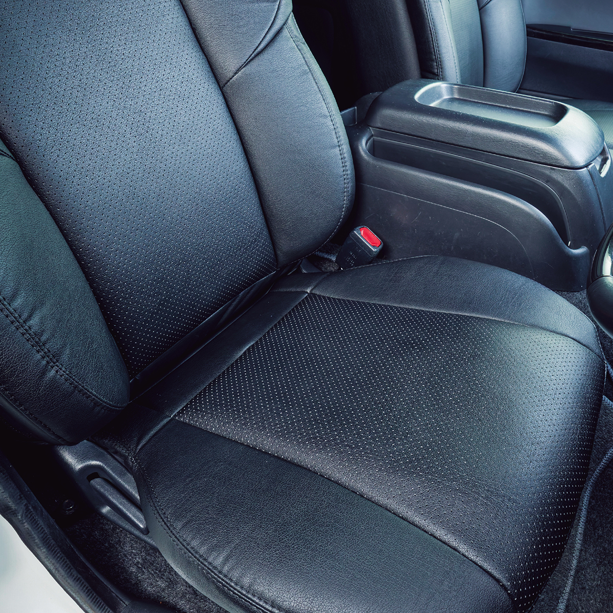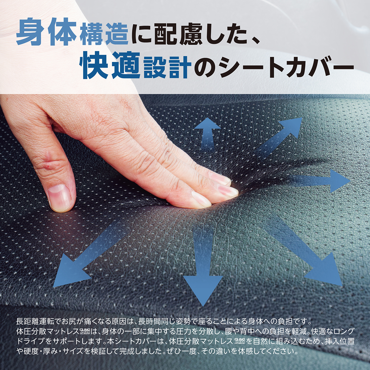 ■レザー表面のべたつき感の軽減と長時間着座による蒸れを軽減する高通気パンチングレザー(合革)を採用。