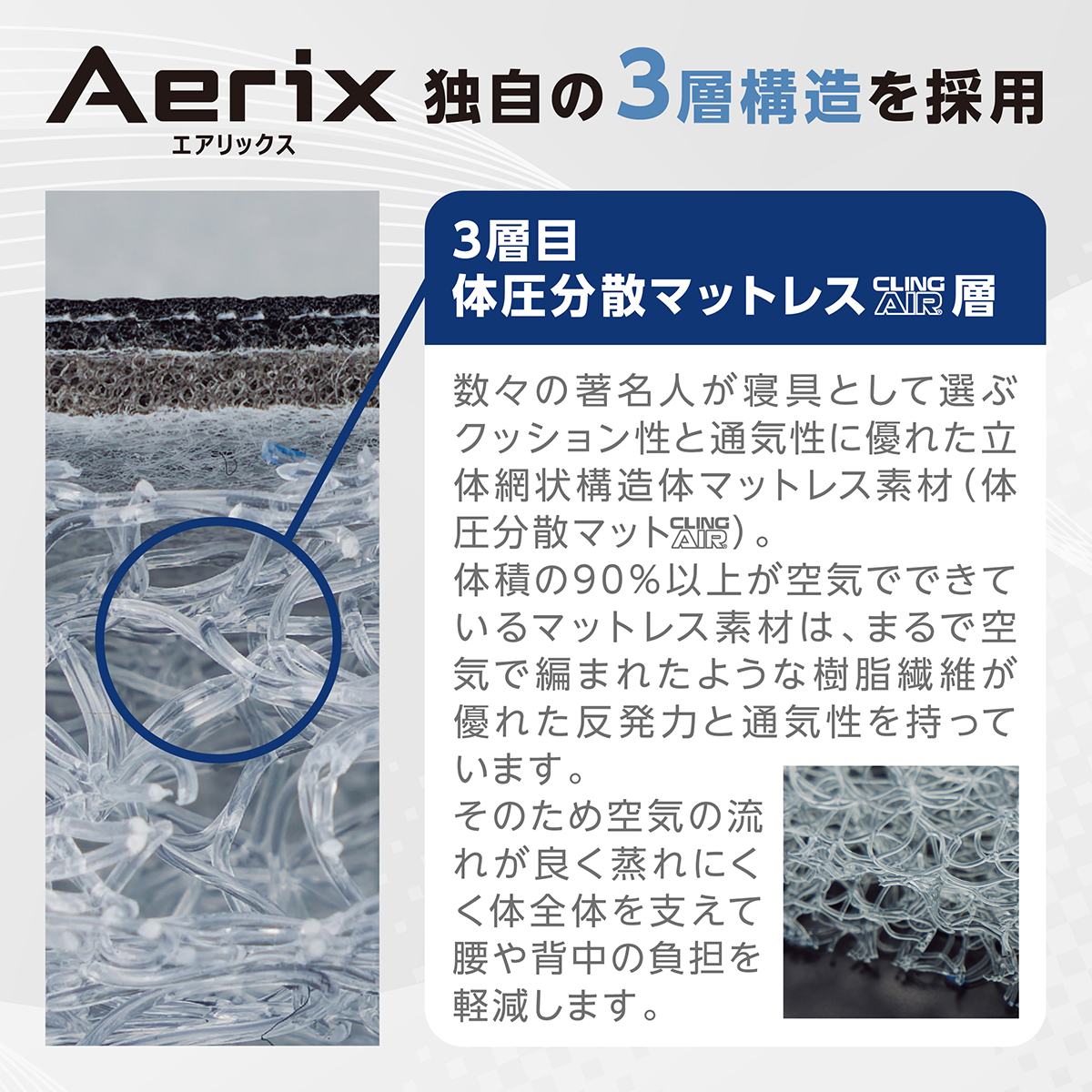 ■著名人が寝具として選ぶクッション性と通気性を高次元で達成したマットレス素材「エアリックス」を背もたれと座面に採用。