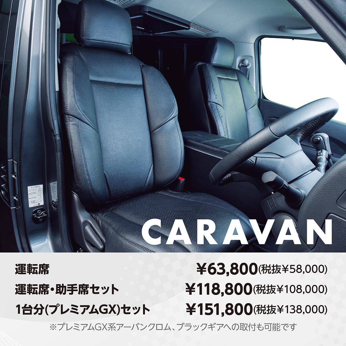 - 内容:キャラバン 3Dバケットシートカバー 1台分(プレミアムGX)セット(2025.8~)